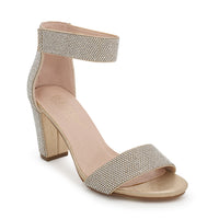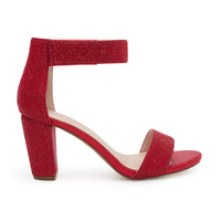 Shop Nicky-4T Cuff Strap Open Toe Low Block Heels at our wholesale footwear store. These shimmer material heels feature velcro straps and cushioned insole support for added comfort. Buy now and get the perfect look for any occasion!