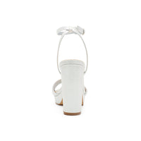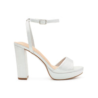 Discover the stylish and comfort of the JANE-36T Ankle Strap Open Toe High Block Heel. These heels are perfect for any event with shimmer material, adjustable buckle straps, and cushioned insole support.