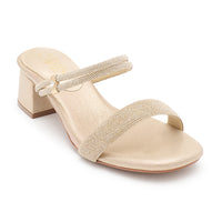 Look stylish and feel comfortable with GRACE-55 Low Block Heels. Crafted from shimmer material, these heels feature adjustable straps fit for maximum comfort.